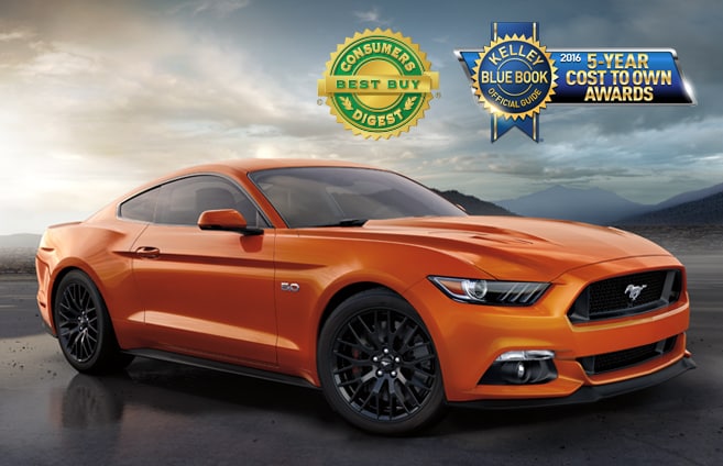 Winning has always been a part of its DNA..The 2016 Mustang* was among the 48 vehicles, across 13 classes of automobiles, to be named a Consumers Digest Best Buy** recommendation for the 2016 model year. And, boasting strong residual values, a low fair purchase price and low maintenance cost, the 2016 Mustang GT captured Kelley Blue Book's kbb.com 5-Year Cost to Own Award.† The award recognizes the lowest estimated out-of-pocket expense drivers are likely to incur beyond the initial vehicle purchase price. | |