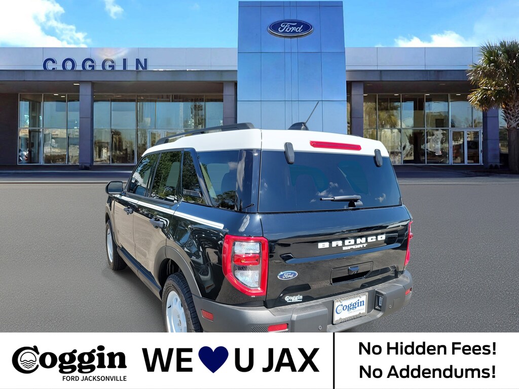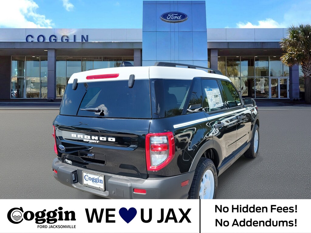 2025 Ford Bronco Sport Heritage 4x4 Shadow Black Classic Style, Modern Capability Turn heads on the road and trail with this 2025 Ford Bronco Sport Heritage 4x4, finished in bold Shadow Black with a retro-inspired Plaid Navy Pier Cloth Interior and a White Oxford Painted Roof. Combining iconic Bronco heritage with modern engineering, this SUV is designed for both everyday comfort and weekend adventures. Powered by a 1.5L EcoBoost engine paired with an 8-speed automatic transmission, the Bronco Sport Heritage delivers efficient yet confident performance. Key Highlights 1.5L EcoBoost Engine w/ 8-speed automatic transmission Heritage Package Styling Oxford White roof & wheels, retro-inspired design cues Convenience Package premium features for daily driving 17 Oxford White Wheels with Continental All-Terrain Tires SYNC 3 with 8 Touchscreen & Apple CarPlay / Android Auto Rear View Camera & Remote Keyless Entry Terrain Management System with 5 G.O.A.T. Modes EPA-estimated 27 MPG combined (25 city / 30 hwy) Why Buy from Coggin Ford Jacksonville At Coggin Ford Jacksonville, were committed to helping you find the perfect Bronco Sport for your lifestyle. Serving Jacksonville, St. Augustine, Daytona, St. Johns, Ponte Vedra, Yulee, Green Cove Springs, and Southern Georgia Backed by our We Love You Jax Promise built on transparency and customer-first service Trusted Ford dealer with expert service and support long after the sale Your go-to destination for 2025 Bronco Sport Heritage in Jacksonville, FL This Shadow Black 2025 Bronco Sport Heritage 4x4 combines retro style with modern tech and capability. Come see why its the perfect SUV for both city streets and off-road escapes. Schedule your test drive today at Coggin Ford Jacksonville..