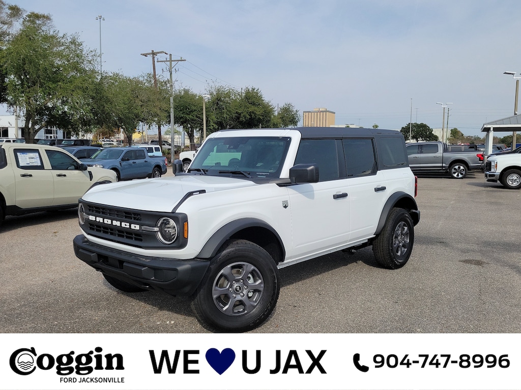 Rugged, capable, and built for adventure this 2025 Ford Bronco Big Bend 4-Door 4 4 in Oxford White captures the true spirit of off-road freedom with the comfort and technology for everyday driving. Powered by the 2.3L EcoBoost I-4 engine paired with a 10-speed automatic transmission, it delivers confident performance whether youre on the highway or tackling rough terrain. This Bronco features the Equipment Group 222A package and comes equipped with a removable hard top, all-terrain tires, and G.O.A.T. Modes for on-demand traction. With its digital tech suite, SYNC 4 system, and advanced safety features, its engineered for the modern explorer. 2.3L EcoBoost I-4 Engine / 10-Speed Automatic Transmission Big Bend Series with Equipment Group 222A 17 Gray-Painted Aluminum Wheels / P255/75R17 All-Terrain Tires 3.73 Rear Axle Ratio with Open Differential Gray Molded-In-Color Removable Hard Top with Storage Bag for Front Panels and Doors Carpet Flooring and Cruise Control FordPass Connect with Wi-Fi Hotspot Capability SYNC 4 with 12 LCD Touchscreen and SiriusXM with 360L Terrain Management System with G.O.A.T. Modes Push-Button Start and Digital Instrument Cluster Smart-Charging USB Ports and 12V Power Points Hill Start Assist, Auto Start-Stop Technology, and Pre-Collision Assist with Automatic Emergency Braking Perimeter Alarm, Rear View Camera, and Tire Pressure Monitoring System Tow Hooks (Front & Rear) and Easy Fuel Capless Filler Why Buy From Coggin Ford Jacksonville: transparent pricing, multi-point inspections, complimentary CarFax reports, easy financing options, and a guest-first experience focused on trust and satisfaction. 2025 Ford Bronco Big Bend 4-Door 4 4, Oxford White, 2.3L EcoBoost, 10-Speed Auto, Equipment Group 222A, Gray Molded Hard Top, SYNC 4 12 Touchscreen, Terrain Management System, G.O.A.T. Modes, All-Terrain Tires, Adventure SUV, Trail-Ready Utility Vehicle.
