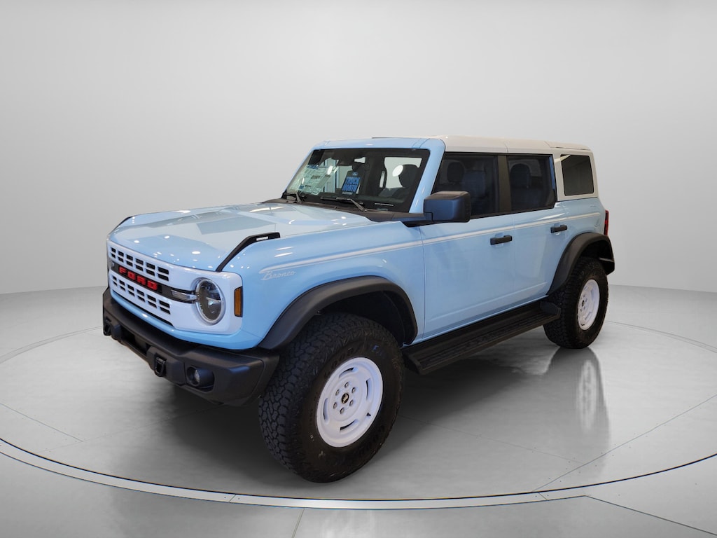 The **2025 Ford Bronco Heritage 4-Door 4x4** delivers unmistakable retro Bronco style paired with modern performance and serious off-road capability, creating an SUV thats as fun to look at as it is to drive. Finished in iconic **Robins Egg Blue** with classic **Heritage Series** design cues, white-painted hard top, and **17-inch Oxford White painted aluminum wheels**, this Bronco stands out instantly with timeless character and bold presence. Under the hood, the powerful **2.7L EcoBoost V6 engine** is paired with a **10-speed automatic transmission**, delivering strong torque, smooth acceleration, and confident performance on pavement and beyond. Equipped with **Advanced 4x4**, **G.O.A.T. Modes (Goes Over Any Type of Terrain)**, and the **Sasquatch Package** featuring **35-inch LT315/70R17 tires**, this Bronco is built to tackle sand, trails, and rugged terrain while still remaining composed for everyday driving. The **Trailer Tow Package** adds extra versatility for hauling gear or small trailers . Inside, the Heritage cabin blends vintage-inspired style with modern technology, featuring **Navy and Onyx plaid cloth seating**, a **digital instrument cluster**, and a large **12-inch center touchscreen** powered by **SYNC 4**. **Dual-zone automatic climate control**, **leather-wrapped steering wheel and gear knob**, **smart USB charging ports**, and **carpeted flooring** create a comfortable, functional interior that works just as well for daily driving as it does for weekend adventures. Designed for open-air freedom, this Bronco includes a **white-painted hard top with sound-deadening headliner** and a **tool kit for easy door and roof removal**, letting you quickly transform the driving experience when the weather is right. Safety and driver-assist features such as **pre-collision assist with automatic emergency braking**, **hill start assist**, **AdvanceTrac with Roll Stability Control**, **Safety Canopy airbags**, and a **rear view camera** help provide confidence both on-road and off. Available in **Jacksonville, FL**, and proudly serving **Duval County, Clay County, St. Johns County, Ponte Vedra, Ponte Vedra Beach, Daytona, Daytona Beach, Orange Park, St. Augustine, Fernandina Beach, and South Georgia communities**..
