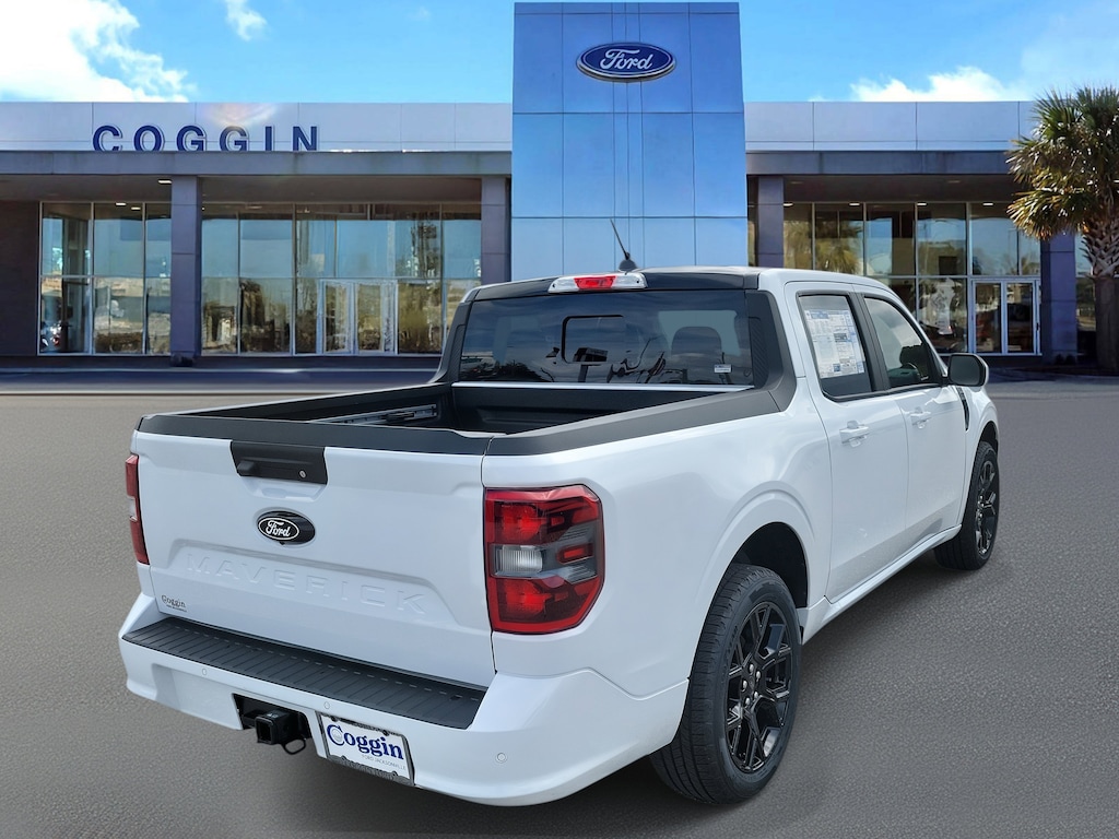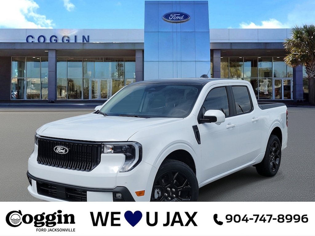 2025 MAVERICK LOBO AWD OXFORD WHITE, 2.0L ECOBOOST, SPORTY DESIGN MEETS EVERYDAY CAPABILITY Bold, agile, and built for drivers who demand something differentthe 2025 Ford Maverick Lobo AWD in Oxford White delivers a unique blend of sport-inspired design and practical versatility. With its turbocharged 2.0L EcoBoost engine, lowered stance, and tuned suspension, its ready to turn Jacksonvilles streets into your personal playground while handling the demands of daily life with ease. Lobo Series (Equipment Group 702A) featuring exclusive design and performance tuning 2.0L EcoBoost engine with automatic transmission and intelligent all-wheel drive Lobo-specific lowered suspension and unique drive mode tuning 19 black aluminum wheels and black grille with matching body-color accents LED signature headlamps, fog lamps, and painted black roof for a striking appearance Blue and lime-accented ActiveX sport seats with soft console lid and under-seat storage SYNC 4 system with 13.2 touchscreen and over-the-air update capability Ford Co-Pilot360 Assist 2.0: Adaptive Cruise Control, Lane Centering, and Pre-Collision Assist with AEB Flexbed system with enclosed bed storage for smart cargo versatility Rotary gear shift dial and paddle shifters for responsive performance FordPass Connect 5G Wi-Fi hotspot and Intelligent Access with Push-Button Start Selectable Drive Modes and Twin-Clutch Rear Drive Unit for on-demand grip and control Safety features: Perimeter Alarm, Safety Canopy airbags, and Tire Pressure Monitoring System Warranty coverage: 3yr/36k bumper-to-bumper, 5yr/60k powertrain, 5yr/60k roadside assistance At Coggin Ford Jacksonville, we make driving something special easy with transparent pricing and guest-focused service. From downtown Jacksonville to Daytona and St. Augustine, the 2025 Maverick Lobo AWD delivers sport-truck attitude with everyday practicality. maverick lobo for sale jacksonville 2025 maverick lobo oxford white maverick lobo 2.0l ecoboost awd maverick lobo with 19-inch wheels maverick lobo tuned suspension maverick lobo with sync 4 touchscreen sporty truck northeast florida maverick lobo st augustine maverick lobo daytona fl maverick lobo tampa maverick lobo kingsland ga maverick lobo starke fl.