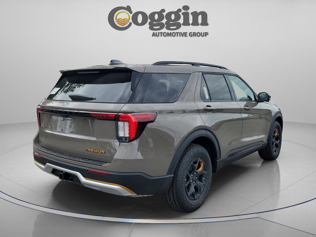 2026 Ford Explorer Tremor 4WD with Off-Road Package and Trail-Ready Capability Engineered for adventure without sacrificing everyday comfort, this new 2026 Ford Explorer Tremor 4WD delivers rugged off-road capability, advanced technology, and versatile three-row functionality. Finished in Marsh Gray with an Onyx interior featuring Miko inserts and Tremor-specific accents, this Explorer is built to handle trails, rough terrain, and daily driving with confidence. 2.3L EcoBoost I-4 engine paired with a 10-speed automatic transmission Intelligent 4WD system with selectable drive modes Tremor trim with Equipment Group 800A Off-road tuned suspension with Tremor-specific shocks Torsen limited-slip rear axle for enhanced traction 18-inch black-painted aluminum wheels with all-terrain tires Skid plates and front tow hooks for off-road protection Off-road auxiliary lighting and unique Tremor badging 13.2-inch touchscreen with Ford Digital Experience, Google Maps, and Play Store 12.3-inch fully digital instrument cluster 360-degree camera for improved trail visibility B&O sound system with 10 speakers Heated and ventilated front seats with heated second-row seating Wireless Apple CarPlay and Android Auto Power liftgate and Intelligent Access with push-button start According to the window sticker, this Explorer Tremor achieves an estimated 21 MPG combined, delivering capable performance with reasonable efficiency for a rugged 4WD SUV. Coggin Ford Jacksonville is committed to delivering a transparent, professional, and guest-focused buying experience. Our knowledgeable team provides clear pricing, a streamlined process, and attentive support designed to respect your time and build confidence from your first visit through ownership. This new 2026 Ford Explorer Tremor 4WD is available now at Coggin Ford Jacksonville and is an excellent choice for drivers seeking a more rugged, off-road-capable Explorer with modern technology and everyday usability. Ideal for buyers looking for a new Ford Explorer Tremor in the Jacksonville area. Proudly serving Jacksonville, Saint Augustine, Northeast Florida, Daytona, Tampa, Southern Georgia, Kingsland, and Starke, this Explorer is ready for trails, family travel, and everything in between., 4WD.