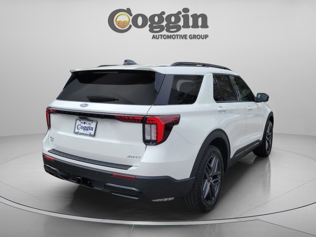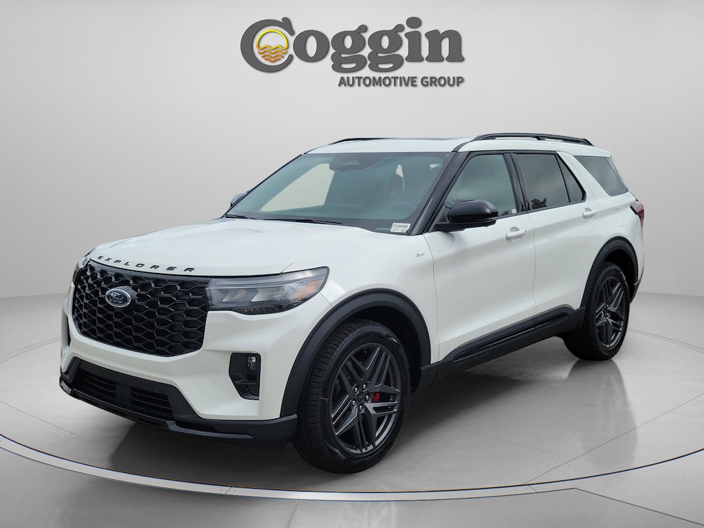 2026 Ford Explorer ST-Line 4WD with Premium Package, Street Pack, and Panoramic Roof Sport-inspired design meets everyday versatility in this new 2026 Ford Explorer ST-Line 4WD, delivering bold styling, advanced technology, and confident all-weather capability. Finished in Star White Metallic Tri-Coat with an Onyx interior featuring unique cloth inserts and red accent stitching, this Explorer combines athletic presence with family-ready functionality. 2.3L EcoBoost I-4 engine paired with a 10-speed automatic transmission Intelligent 4WD system for enhanced traction and control ST-Line trim with Equipment Group 300A Premium Package with ambient lighting, auto-dimming rearview mirror, and 110V/150W power outlet ST-Line Street Pack with 21-inch aluminum wheels, performance brakes, and upgraded tires Panoramic moonroof with fixed glass and power sunshade Second-row captains chairs with heated second-row seating B&O sound system with 10 speakers 13.2-inch touchscreen with Ford Digital Experience, Google Maps, and Play Store 12.3-inch fully digital instrument cluster 360-degree camera for enhanced visibility Wireless Apple CarPlay and Android Auto Power driver and front passenger seats with heated front seats Power liftgate and Intelligent Access with push-button start According to the window sticker, this Explorer ST-Line achieves an estimated 23 MPG combined, offering a strong balance of performance and efficiency for a capable three-row SUV. Coggin Ford Jacksonville is committed to delivering a transparent, professional, and guest-focused buying experience. Our knowledgeable team provides clear pricing, a streamlined process, and attentive support designed to respect your time and build confidence from your first visit through ownership. This new 2026 Ford Explorer ST-Line 4WD is available now at Coggin Ford Jacksonville and is an excellent choice for drivers seeking a sport-styled SUV with advanced technology and everyday practicality. Ideal for buyers looking for a new Ford Explorer ST-Line in the Jacksonville area. Proudly serving Jacksonville, Saint Augustine, Northeast Florida, Daytona, Tampa, Southern Georgia, Kingsland, and Starke, this Explorer is ready for daily driving, family travel, and everything in between., 4WD.
