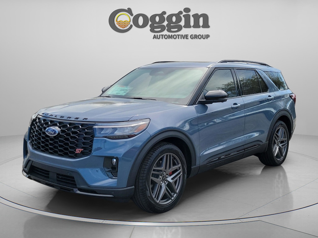 2026 Ford Explorer ST 4WD with Twin-Turbo V6 Performance and Sun & Sound Package Built for drivers who want exhilarating performance wrapped in a refined, three-row SUV, this new 2026 Ford Explorer ST 4WD delivers powerful acceleration, advanced technology, and bold ST design in a vehicle that stands out on every drive. With its twin-turbo EcoBoost V6, sport-tuned suspension, and premium interior features, this Explorer ST is engineered for confident daily driving, spirited performance, and comfortable long-distance travel. 3.0L EcoBoost twin-turbo V6 engine paired with a 10-speed automatic transmission Intelligent 4WD system with selectable drive modes ST Series with Equipment Group 400A Sport-tuned suspension with red performance brake calipers 21-inch aluminum wheels with performance all-season tires Sun and Sound Package with panoramic moonroof and B&O sound system B&O premium audio system with 14 speakers Heated and ventilated front seats with multi-contour functionality Second-row heated captains chairs and power-folding third-row seating 13.2-inch center touchscreen with Ford Digital Experience, Google Maps, and Play Store 12.3-inch fully digital instrument cluster 360-degree camera system for confident maneuvering Ford Co-Pilot360 Active 2.0 driver-assist technologies BlueCruise hands-free highway driving capability with 90-day trial Quad-tip dual exhaust, black mesh grille, and distinctive ST exterior accents Coggin Ford Jacksonville is committed to delivering a transparent, professional, and guest-focused buying experience. Our experienced team provides clear pricing, a streamlined purchase process, and attentive support designed to respect your time and build long-term confidence from the moment you arrive. This new 2026 Ford Explorer ST 4WD is available now at Coggin Ford Jacksonville and is an exceptional choice for drivers seeking high-performance capability with premium comfort and modern technology. Ideal for buyers looking for a new Ford Explorer ST in the Jacksonville area. Proudly serving Jacksonville, Saint Augustine, Northeast Florida, Daytona, Tampa, Southern Georgia, Kingsland, and Starke, this Explorer ST is ready to deliver powerful performance, everyday versatility, and standout style wherever the road leads., 4WD.