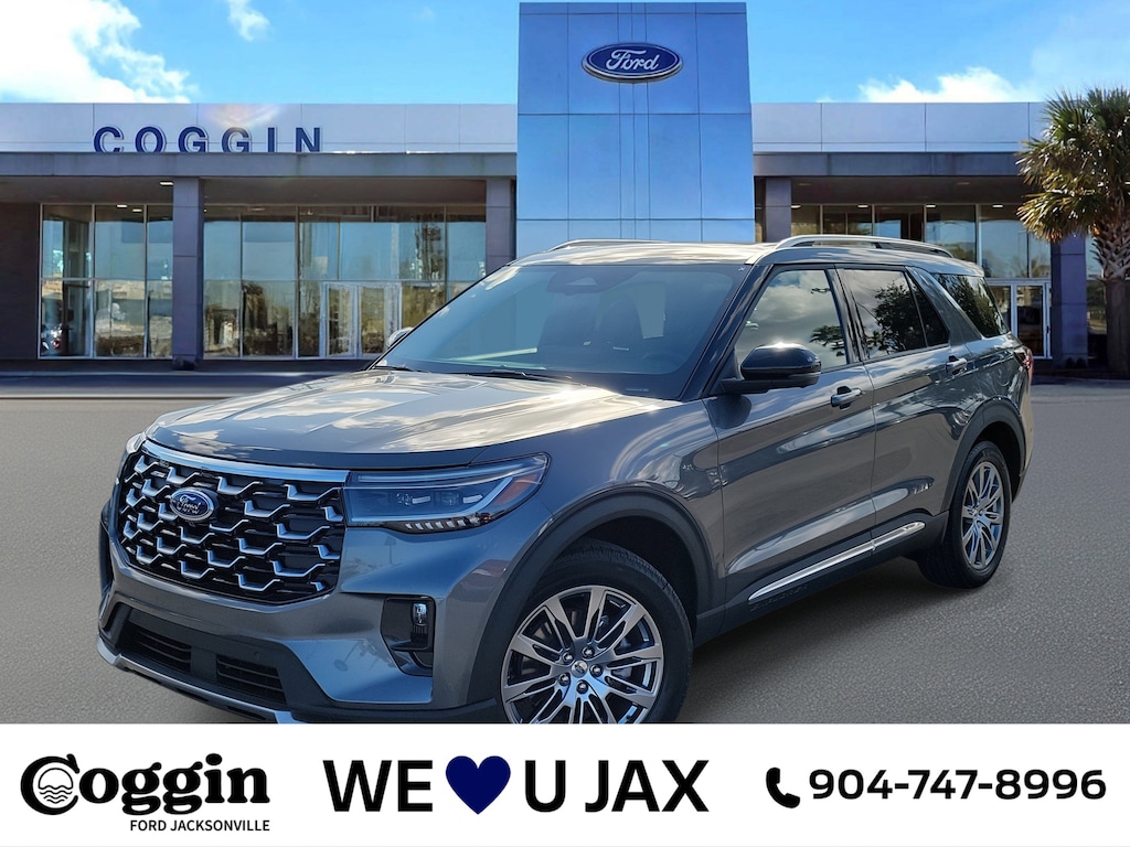 Premium luxury meets intelligent innovation in this 2026 Ford Explorer Platinum RWD finished in Carbonized Gray Metallic with Mojave Dusk leather-trimmed seating. Combining refined design, comfort, and cutting-edge technology, this top-tier SUV delivers performance and sophistication for discerning drivers. Under the hood, the 2.3L EcoBoost engine and 10-speed automatic transmission provide smooth, confident power with excellent efficiency. The Platinum trim brings every premium touch Ford offersfrom satin chrome exterior accents to ventilated multicontour seats and an immersive B&O 14-speaker sound system. With Ford BlueCruise and a panoramic moonroof, the experience feels as advanced as it is luxurious. 2.3L EcoBoost I-4 Engine / 10-Speed Automatic Transmission Platinum Trim with Satin Chrome Exterior Accents and Black Painted Roof Carbonized Gray Metallic Exterior / Mojave Dusk Leather Interior Panoramic Fixed-Glass Moonroof with Power Shade 20 Nickel-Painted Aluminum Wheels Ford BlueCruise (1-Year + 90-Day Plan) with Co-Pilot360 Active 2.0 13.2 SYNC Touchscreen and Ford Digital Experience with Google Integration 12.3 LCD Digital Cluster and 360-Degree Camera B&O 14-Speaker Premium Audio System Heated and Ventilated Multicontour Front Seats with Active Motion Heated 2nd-Row Seats and PowerFold 3rd Row Class III Trailer Tow Package and Selectable Drive Modes LED Adaptive Headlamps, Rain-Sensing Wipers, and Ambient Interior Lighting Why Buy From Coggin Ford Jacksonville: transparent pricing, multi-point inspections on every vehicle, complimentary CarFax reports, easy financing, and a guest-first buying experience from a trusted local team. 2026 Ford Explorer Platinum RWD, Carbonized Gray Metallic, Mojave Dusk Leather, 2.3L EcoBoost, 10-Speed Auto, BlueCruise, SYNC Touchscreen, B&O Audio, Panoramic Roof, Trailer Tow Package, Heated/Ventilated Seats, Luxury 3-Row SUV, Premium Family Vehicle.