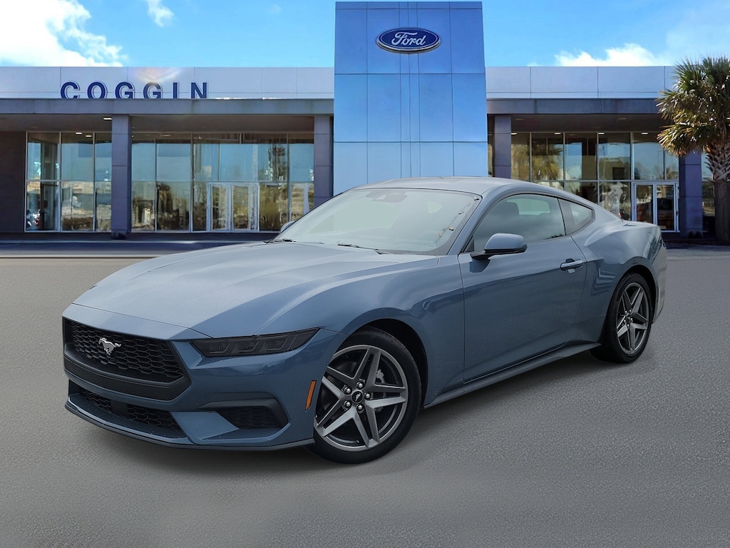 2026 Ford Mustang EcoBoost Coupe Vapor Blue, Iconic Style with Turbocharged Power The 2026 Ford Mustang EcoBoost Coupe in Vapor Blue Metallic is a modern sports car that blends iconic Mustang style with turbocharged efficiency and advanced technology. With its sleek design, track-ready features, and factory-fresh reliability, this coupe is the perfect fit for Jacksonville drivers who crave excitement, whether cruising through St. Augustine or opening it up on Southern Georgia highways. **Key Features Youll Love** * 2.3L EcoBoost engine with 10-speed automatic transmission * 19 Premier Polished Aluminum wheels with W-rated performance tires * 3.15 limited-slip rear axle for enhanced traction * Ford Co-Pilot360 with Rear Parking Sensors, Rear View Camera, and Lane-Keeping tech * 12.4 digital instrument cluster and 13.2 center touchscreen with SYNC 4 * Track Apps for performance data and selectable drive modes * Dual-zone electronic climate control for year-round comfort * Intelligent Access with push-button start and FordPass Connect modem with app integration * Premium front and rear floor liners with carpet mats * LED headlamps with signature lighting and sequential LED taillamps * Flat-bottom steering wheel, split-fold rear seat, and smart-charging USB ports * Safety features: AdvanceTrac ESC, multiple airbags including driver/passenger knee airbags, SOS Post-Crash Alert System, SecuriLock anti-theft system * Factory-backed warranty: 3yr/36k bumper-to-bumper, 5yr/60k powertrain, 5yr/60k roadside assistance **Why Buy Your New Ford from Coggin Ford Jacksonville** At Coggin Ford Jacksonville, we go beyond just selling carswe deliver a guest-first, transparent buying experience. Thats why sports car buyers across Jacksonville, Daytona, Kingsland, and Tampa choose us over Courtesy Toyota, Bozard Ford, and Duval Ford. With us, youll enjoy: * Guest-Centric Approach with support focused on your needs * Transparent, Upfront Pricing with no hidden add-ons * Priority access to fresh Ford inventory and custom ordering * Complimentary new-vehicle orientation to help you get the most out of your Mustang * Trusted local service and warranty support across Northeast Florida and Southern Georgia.