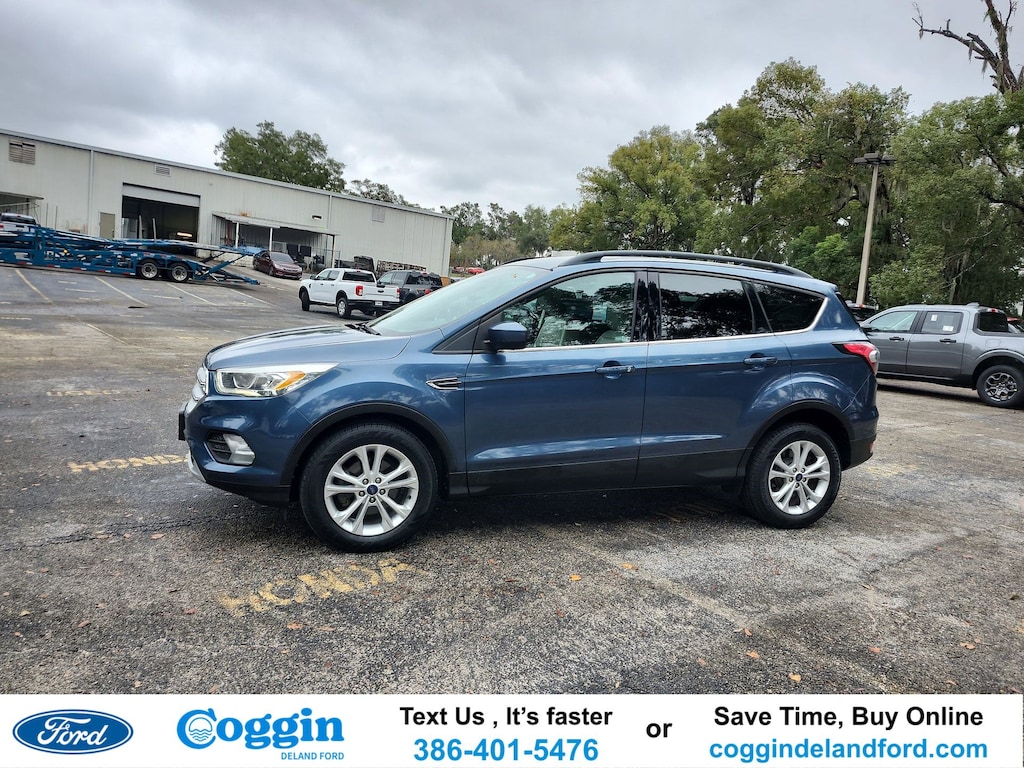 Check out all these options: Equipment Group 300A, 3.21 Axle Ratio, 4-Wheel Disc Brakes, 6 Speakers, ABS brakes, Air Conditioning, Alloy wheels, AM/FM radio: SiriusXM, AppLink/Apple CarPlay and Android Auto, Automatic temperature control, Brake assist, Bumpers: body-color, CD player, Compass, Delay-off headlights, Driver door bin, Driver vanity mirror, Dual front impact airbags, Dual front side impact airbags, Electronic Stability Control, Emergency communication system: 911 Assist, Exterior Parking Camera Rear, Four wheel independent suspension, Front anti-roll bar, Front Bucket Seats, Front Center Armrest, Front dual zone A/C, Front fog lights, Front reading lights, Fully automatic headlights, Heated door mirrors, Heated front seats, Heated Leather-Trimmed Front Bucket Seats, Illuminated entry, Knee airbag, Leather Shift Knob, Low tire pressure warning, Occupant sensing airbag, Outside temperature display, Overhead airbag, Overhead console, Panic alarm, Passenger door bin, Passenger vanity mirror, Power door mirrors, Power driver seat, Power Liftgate, Power steering, Power windows, Radio data system, Radio: AM/FM Stereo w/Single-CD/MP3 Player, Rear anti-roll bar, Rear Parking Sensors, Rear seat center armrest, Rear window defroster, Rear window wiper, Remote keyless entry, Roof rack: rails only, Security system, Speed control, Speed-sensing steering, Split folding rear seat, Steering wheel mounted audio controls, SYNC 3 Communications & Entertainment System, SYNC Connect, Tachometer, Telescoping steering wheel, Tilt steering wheel, Traction control, Trip computer, Variably intermittent wipers, and Wheels: 17 Sparkle Silver-Painted Aluminum. 2018 Ford Escape Blue 6-Speed Automatic 4D Sport Utility 1.5L EcoBoost FWD